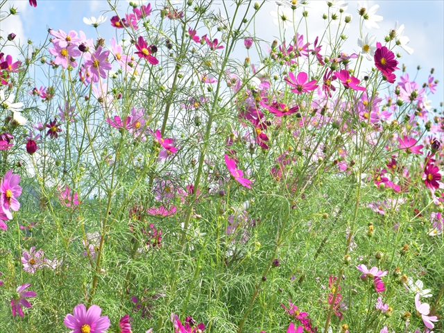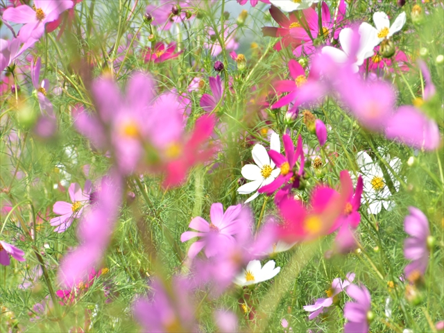 ピンクとホワイトの色合いのコスモスさんは本当に可憐でべっぴんさんですね!